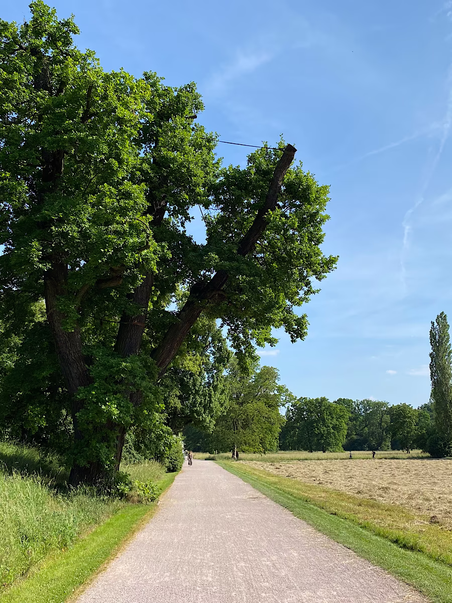 Einzelne Bäume setzen Akzente: Ein einzelner Baum auf einer weiten Wiese oder einem Hügel kann als starker Blickfang dienen und die Weite der Landschaft betonen.